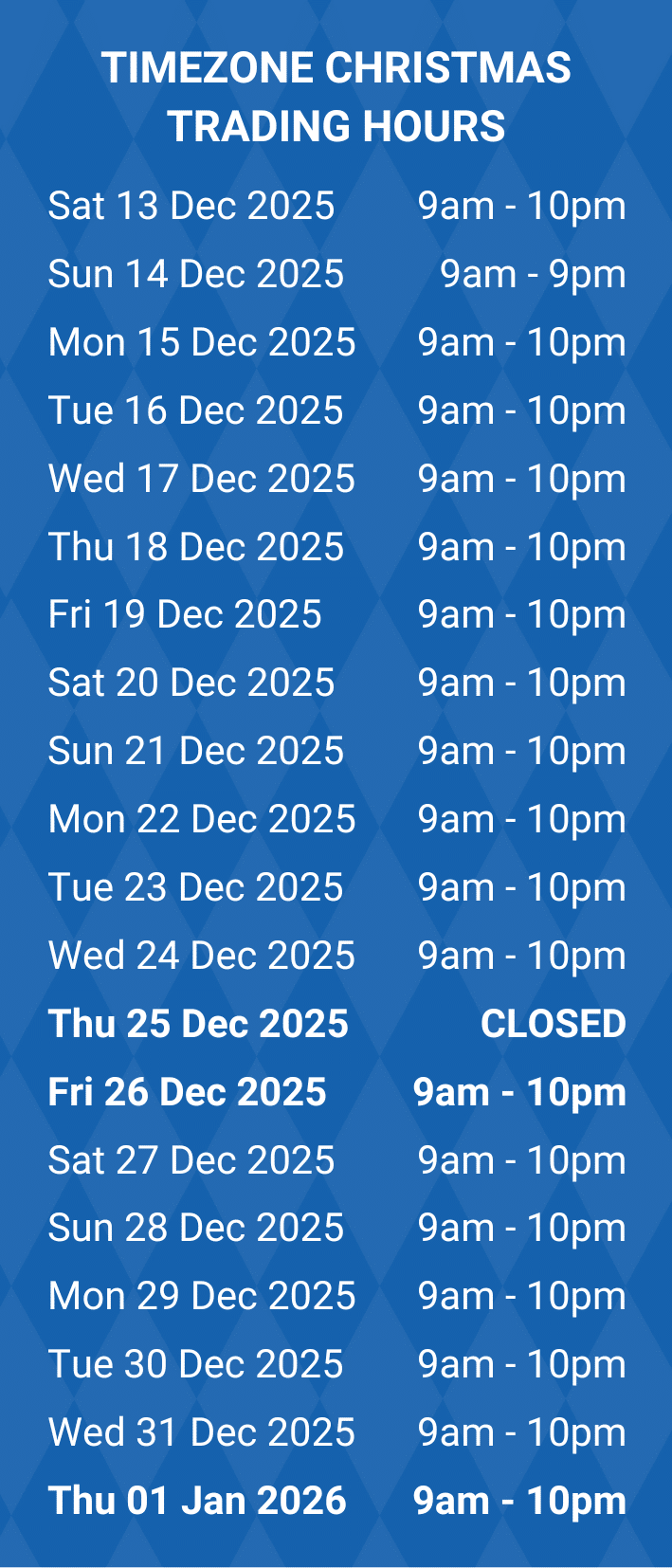 Get ready for entertainment overload with Timezone! Enjoy the latest and greatest arcade games and take home a must-have prize from our Winners Vault. Whether you are hosting a party, having a date night or beating a high score -Timezone is the place to be!