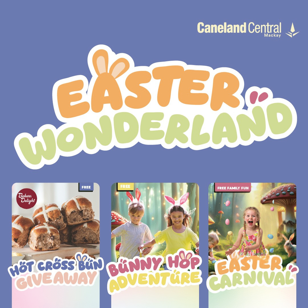 Hop into FREE Easter fun for the whole family at Caneland Central this Easter! Don't miss the Hot Cross Bun Giveaway, Bunny Hop Adventure, Easter Carnival & Egg Hunt.